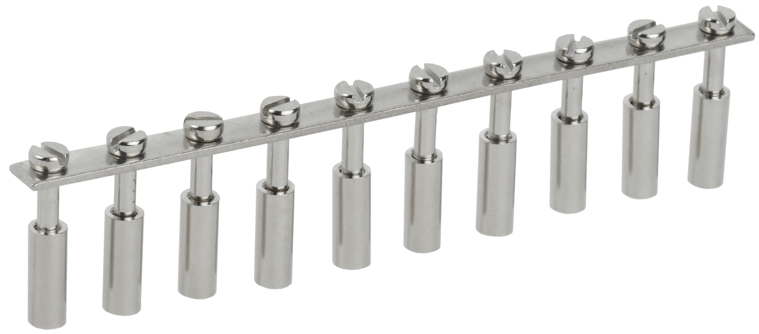 Перемычки (гребенки) используются для электрического соединения рядов клеммных сборок винтового типа (клеммы КВИ) в системах распределения.