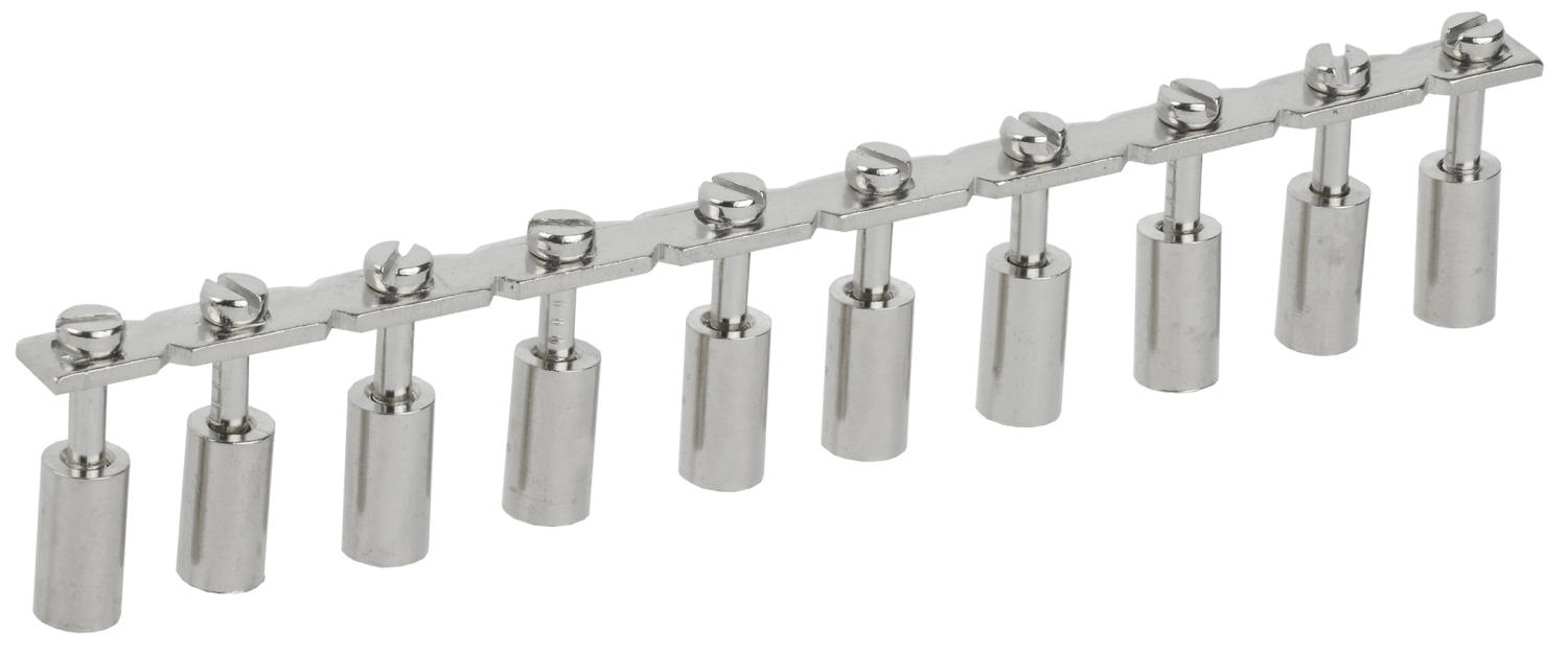 Перемычки (гребенки) используются для электрического соединения рядов клеммных сборок винтового типа (клеммы КВИ) в системах распределения.