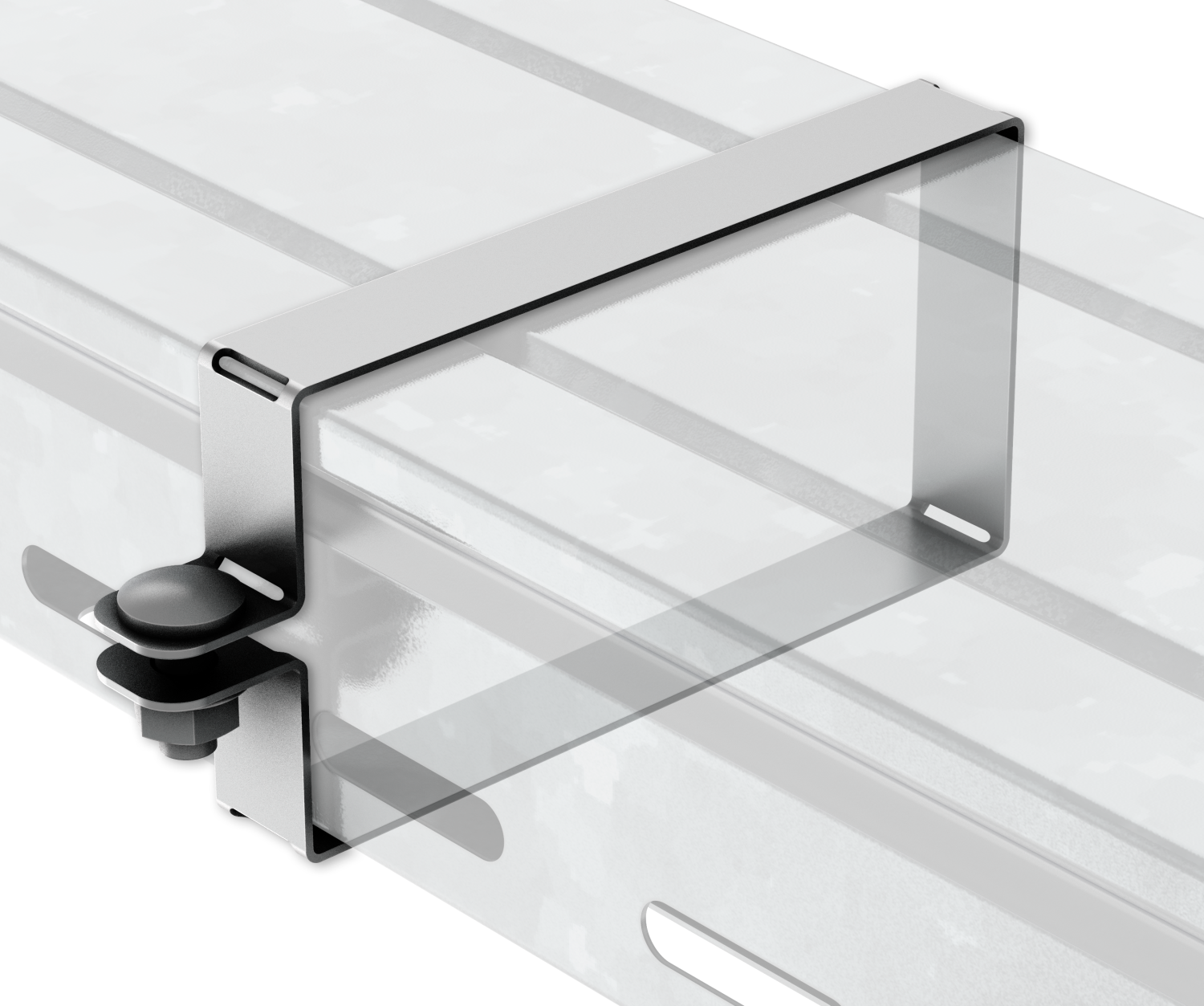 Хомут крышки обеспечивает надёжность соединения и открывает возможность применения кабельной трассы в условиях повышенных ветровых нагрузок.