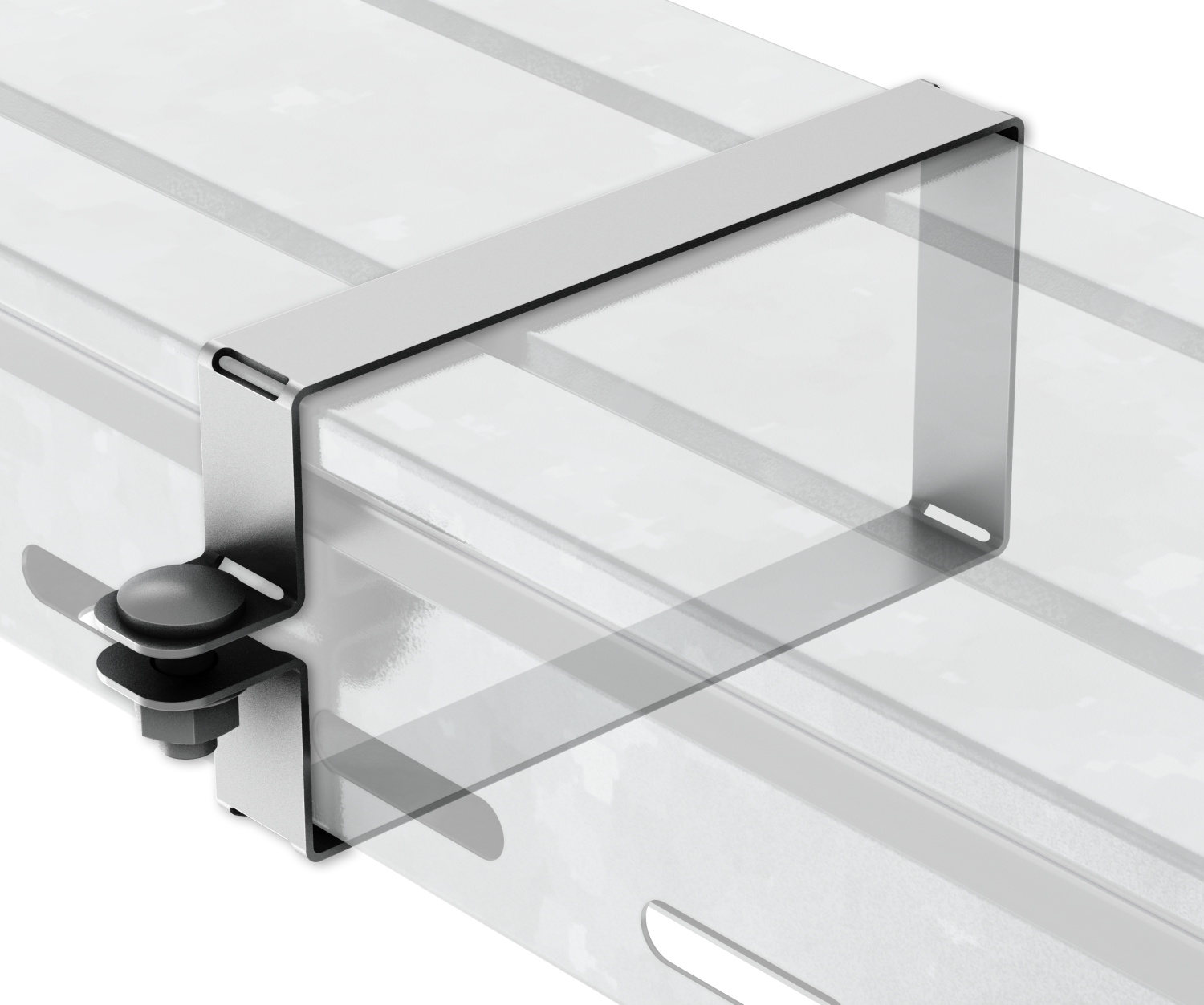 Хомут крышки обеспечивает надёжность соединения и открывает возможность применения кабельной трассы в условиях повышенных ветровых нагрузок.